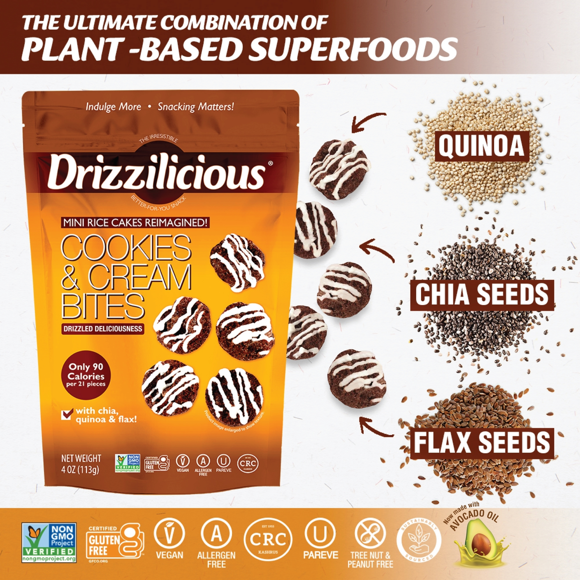 Our Drizzilicious Cookies & Cream bites are mini rice cakes reimagined!