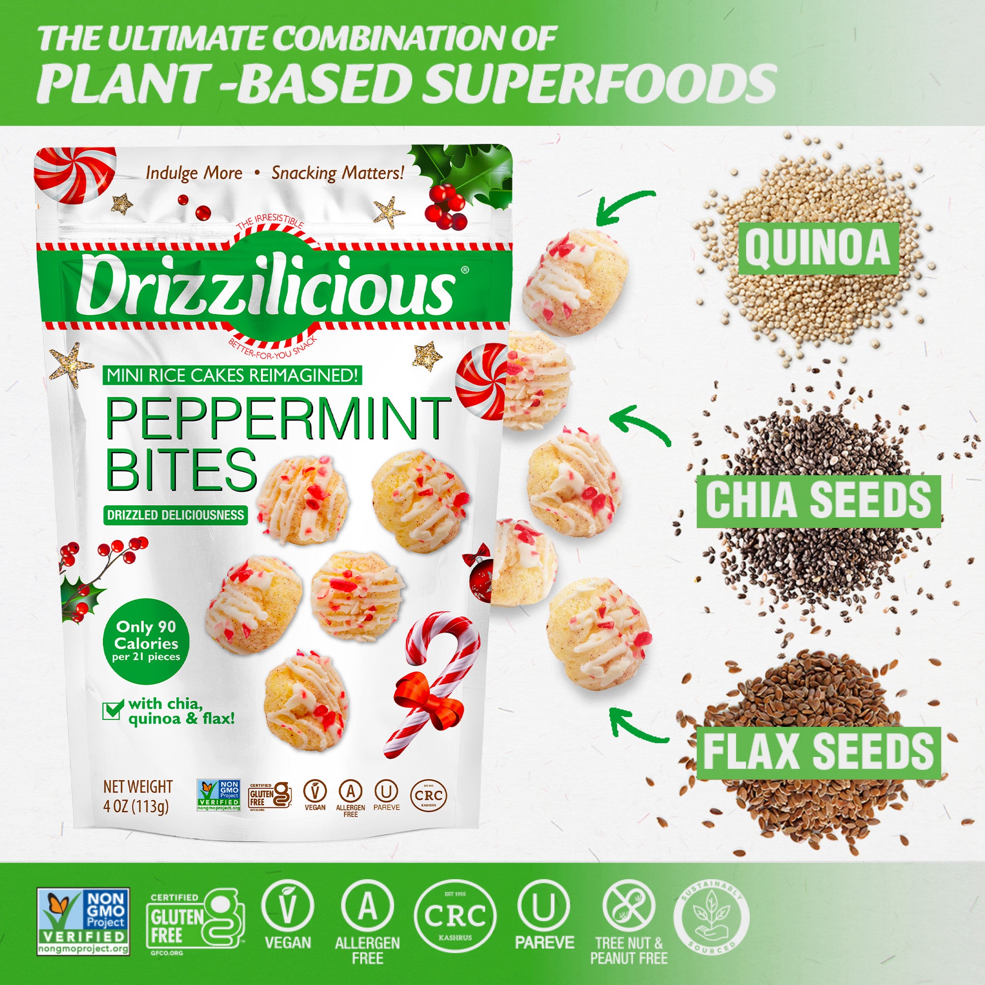 Our Drizzilicious Peppermint bites are mini rice cakes reimagined!